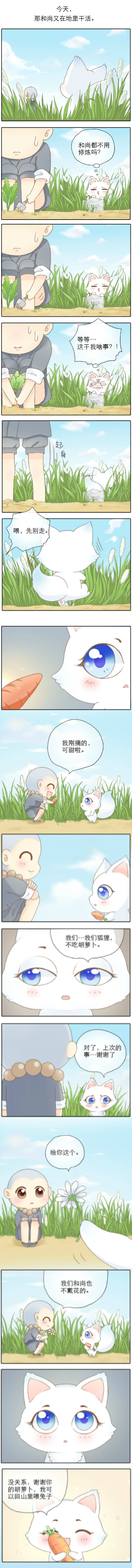 在妖怪的世界,小狐狸是个不被注意的家伙。每天独来独往,生活也很单调。直到有一天,它遇见了误入妖怪镇的小和尚……那个头圆圆的小和尚你给我站住, 闯进了我的地盘,就别想跑啦!爆笑治愈的小和尚和小狐狸,每天喂你一勺暖和甜。